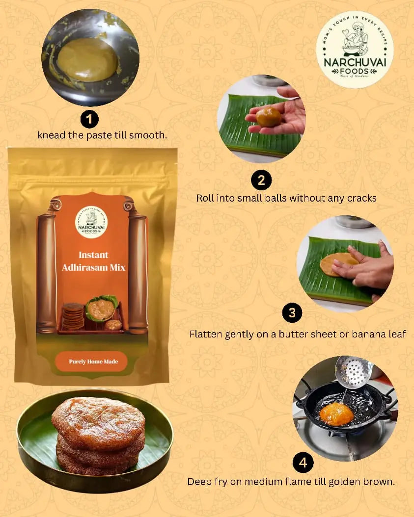 Made from time-honored recipes, this mix brings you the same authentic flavor and texture of freshly prepared adhirasams without the long process.